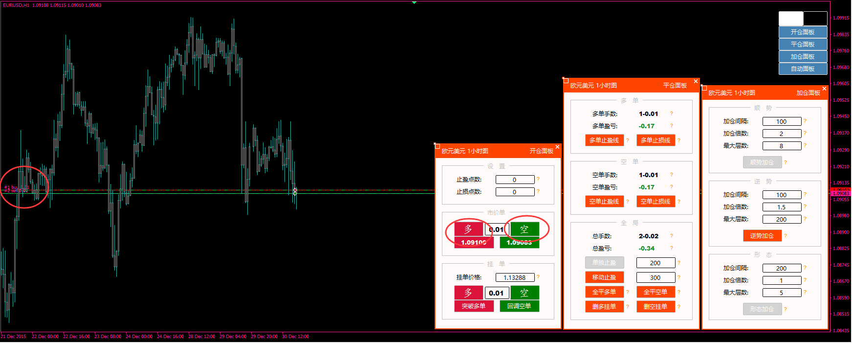 1、面板根据最新的AllTime1.8.2版本,增加了若干功能,尤其是平仓面板的功能,对这个ea比较实用。